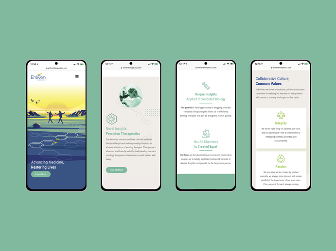 The therapeutics market is diluted with smiling patient imagery used in similar graphic treatments with similar messaging. Enliven needed an unexpected and original brand look and feel to help punch through and build a new marketing effort. And they wanted to start with a website. Once again it was a budget sensitive assignment and the agency needed an experienced and multi-dimentional freelance Creative/Art Director to lead and create the project.